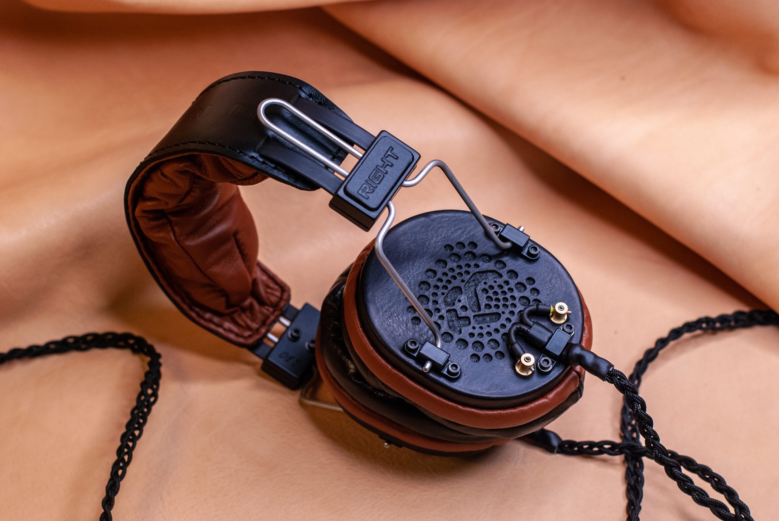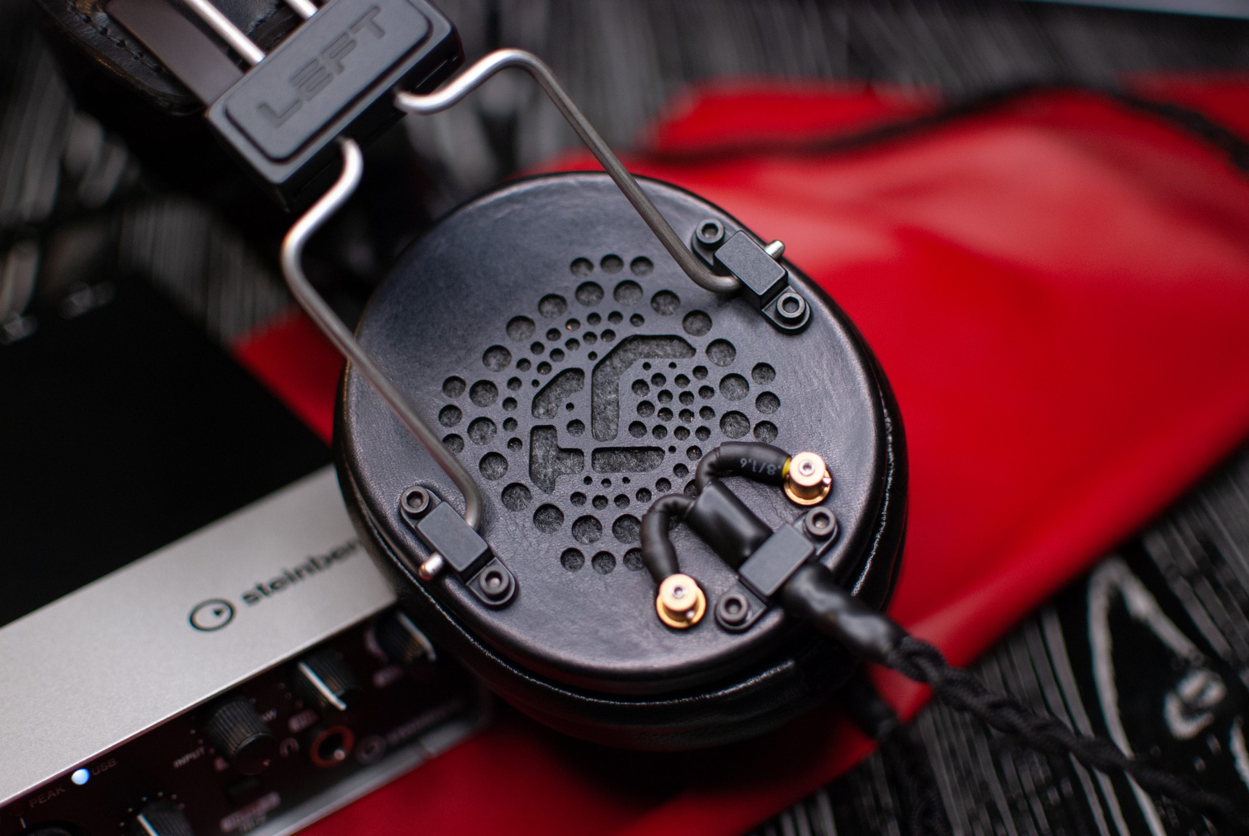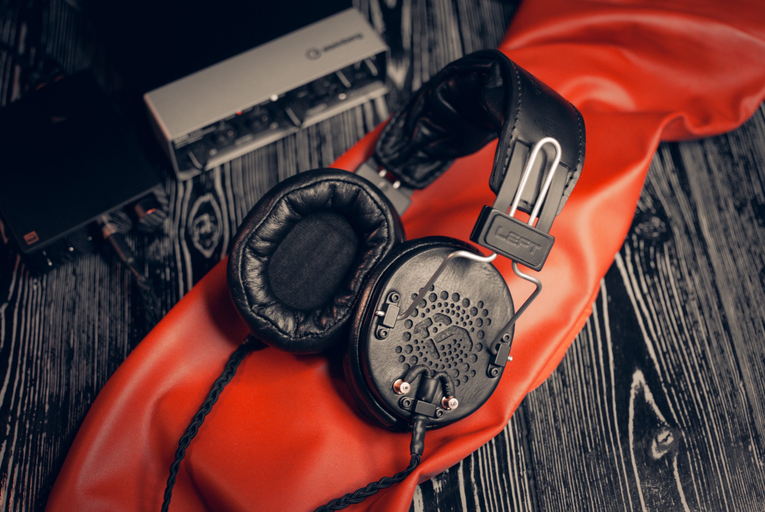 Авиационный алюминий, натуральная кожа, премиальные звукопоглощающие материалы, мягкая пена, уникальные решения по дренажу избыточного давления воздуха из чашки и снижению резонансов, полузакрытая конструкция и майларовый драйвер — собственной разработки.