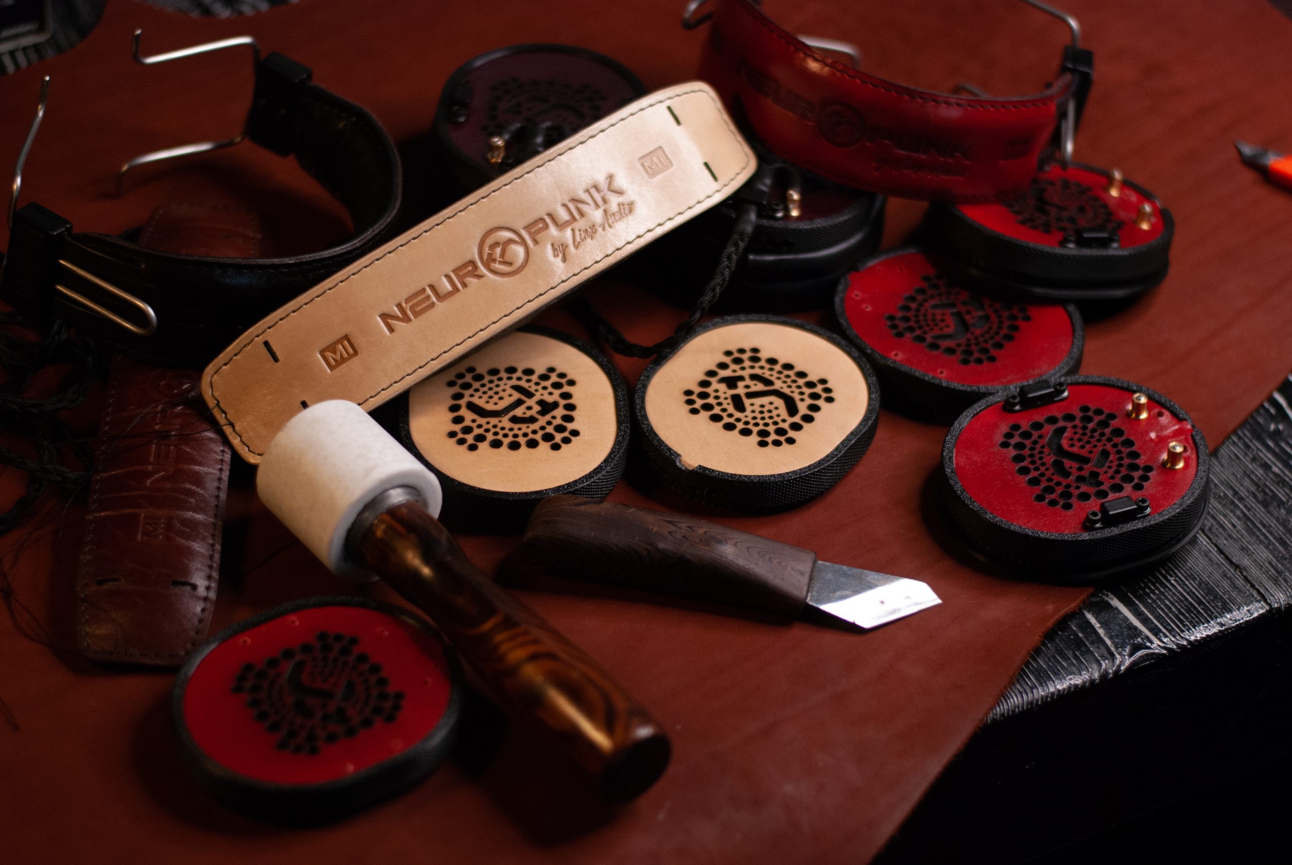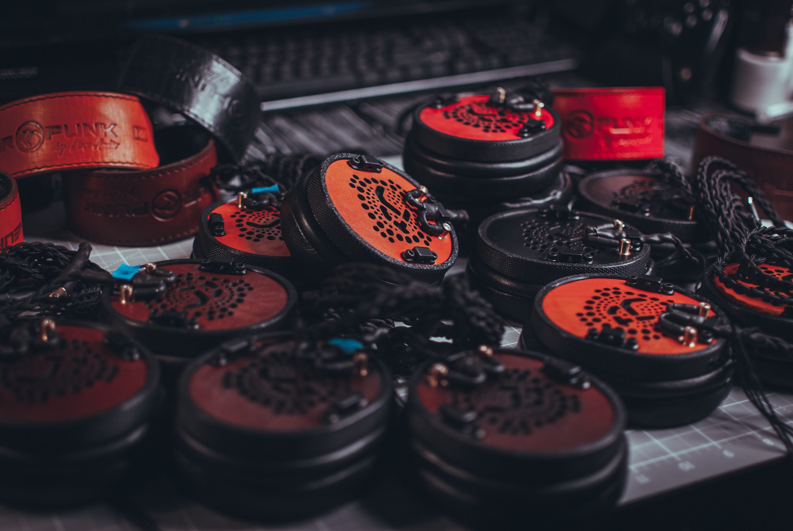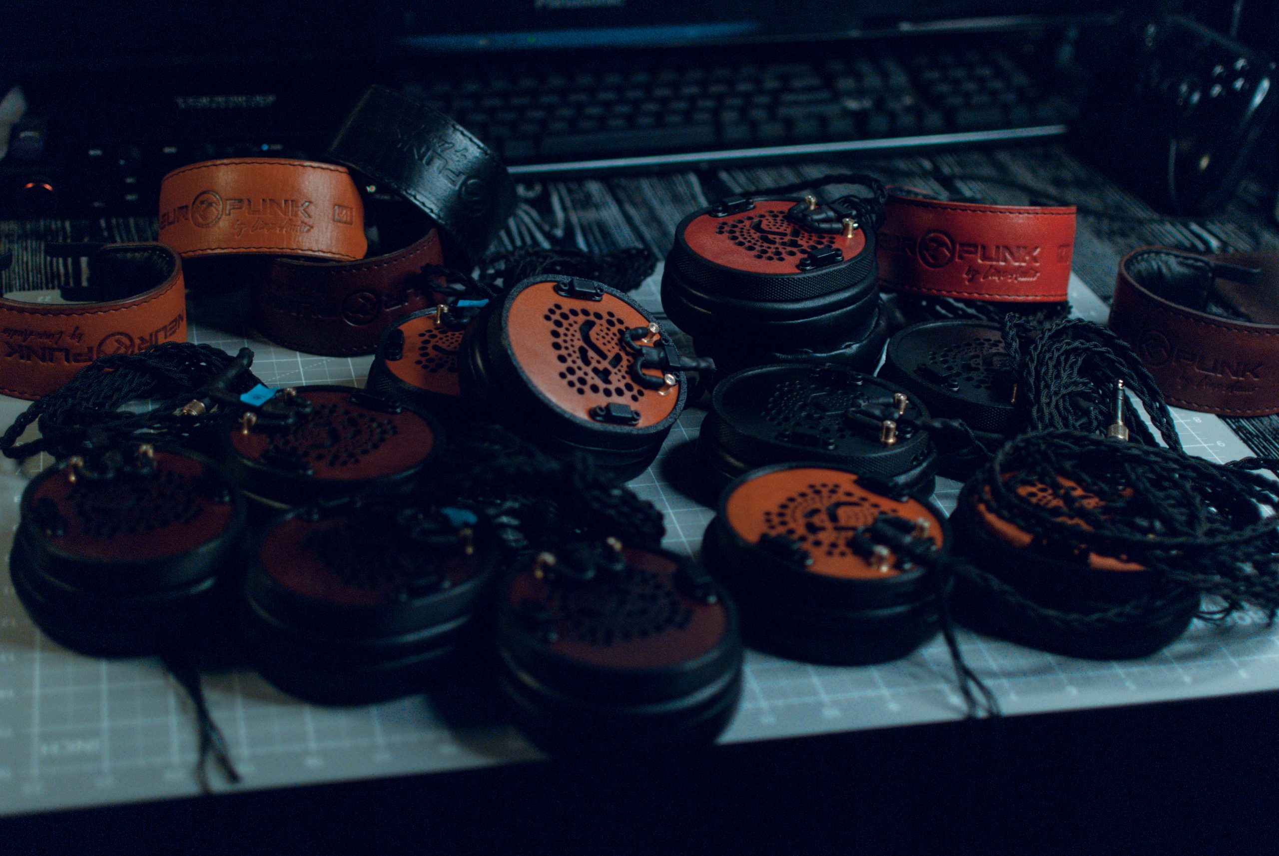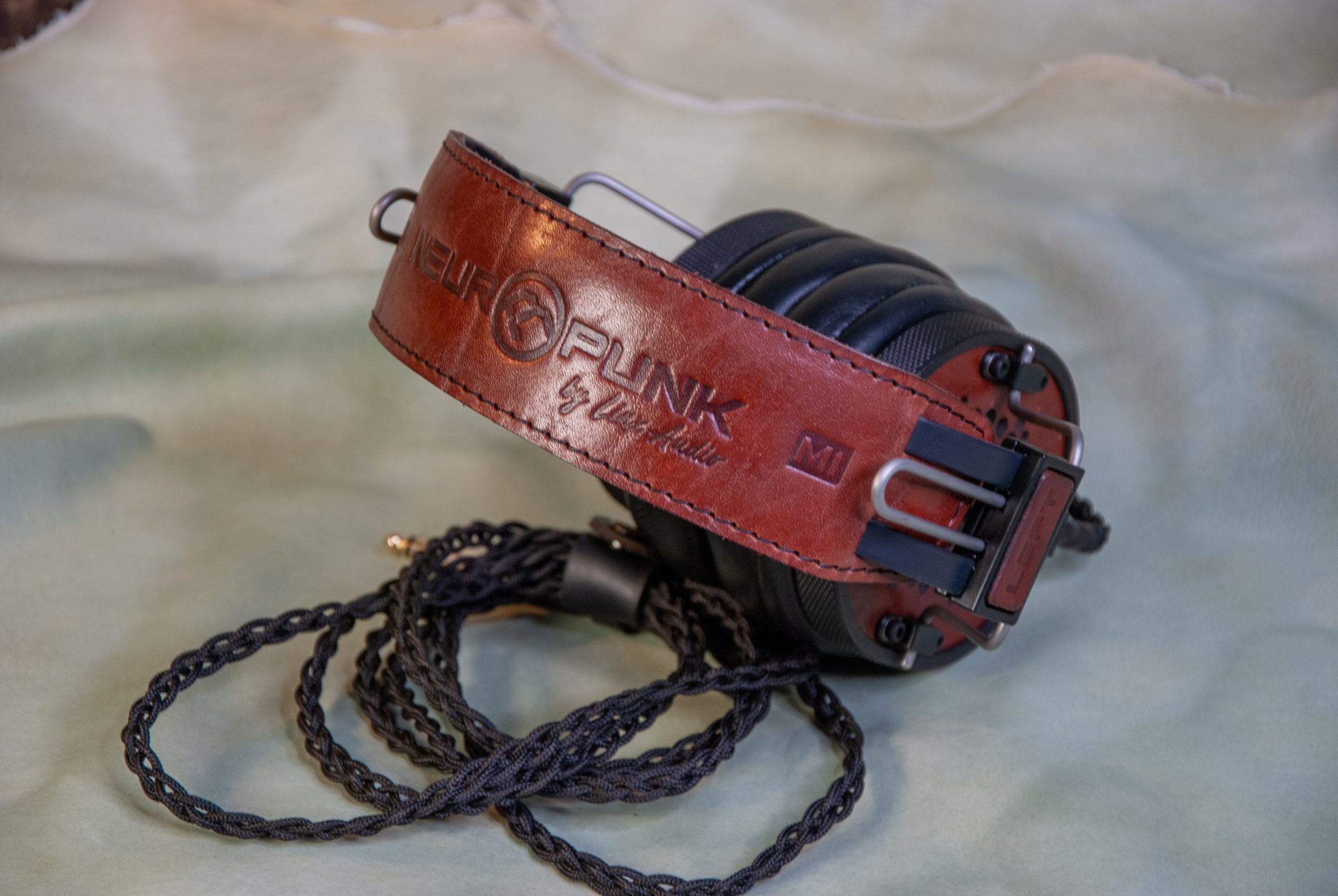Авиационный алюминий, натуральная кожа, премиальные звукопоглощающие материалы, мягкая пена, уникальные решения по дренажу избыточного давления воздуха из чашки и снижению резонансов, полузакрытая конструкция и майларовый драйвер — собственной разработки.