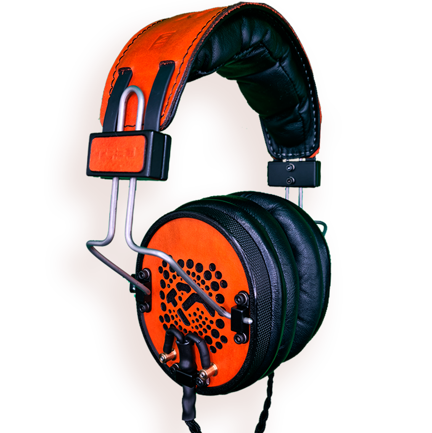 Aviation aluminum, natural leather, premium sound-absorbing materials, soft foam, unique solutions for air pressure drainage from the headphone cup and resonance reduction, proprietary semi-open design and mylar driver.